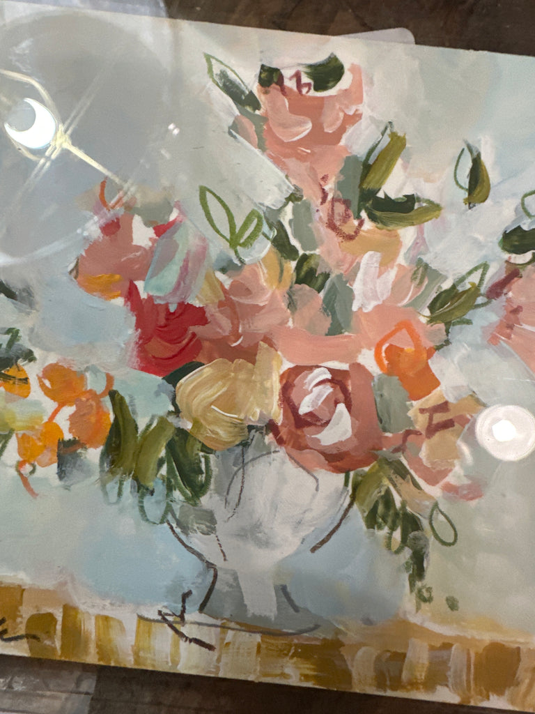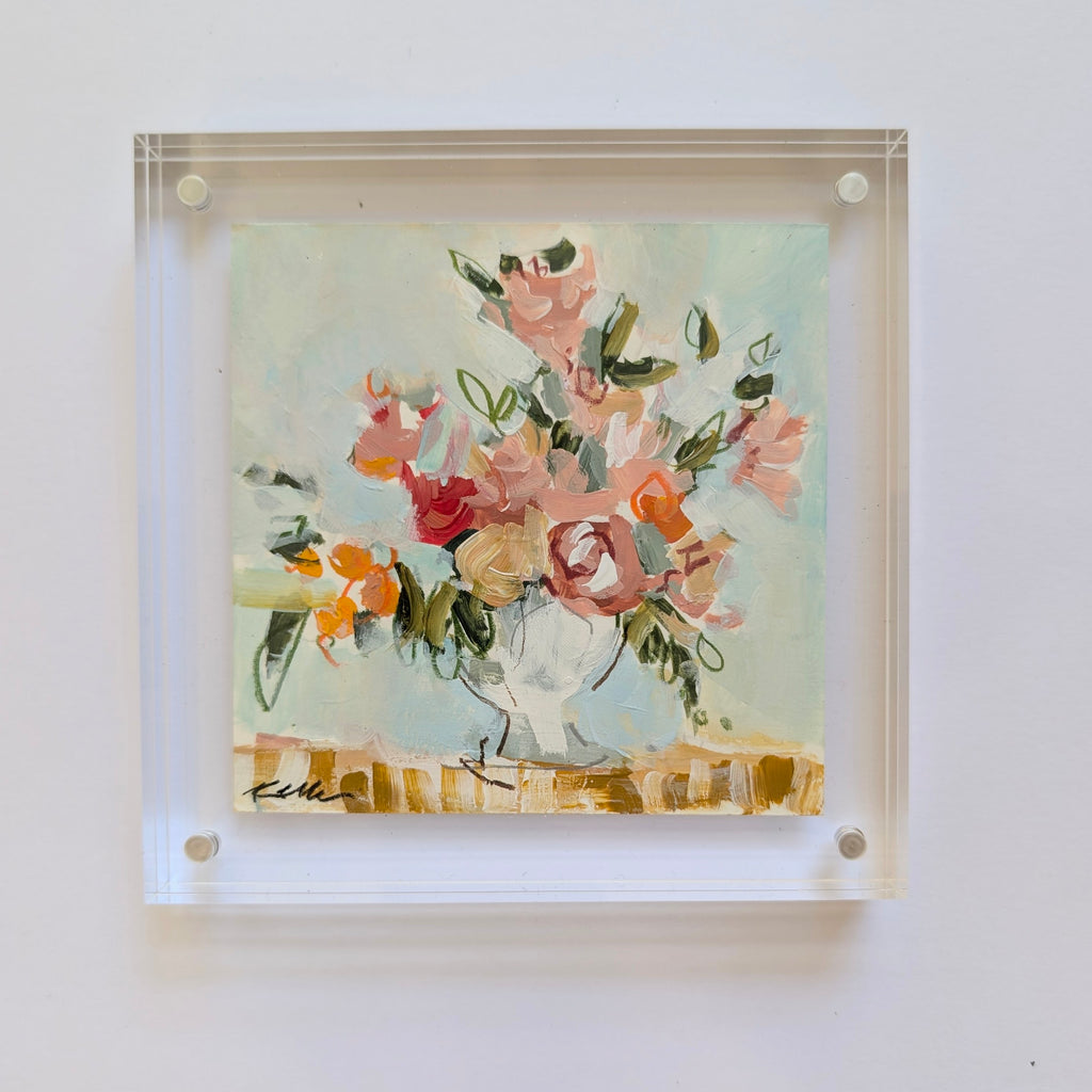 Original still-life floral on paper in acrylic frame 🖼️ free-standing- add a little pop-up color to your bar over the holidays!
