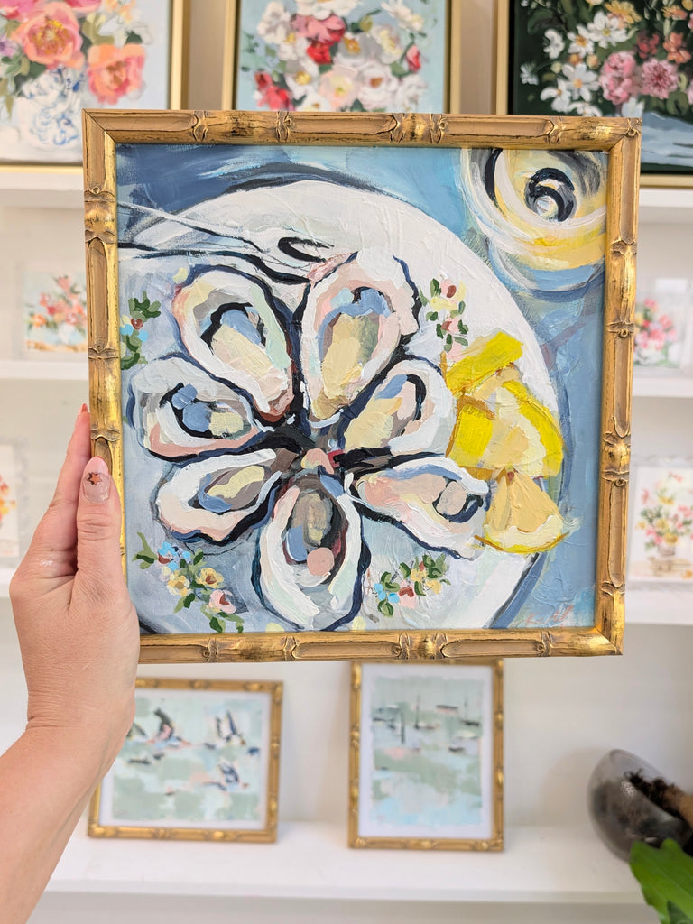 Original 𦪠oysters on board in gold bamboo float frameĀ
